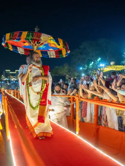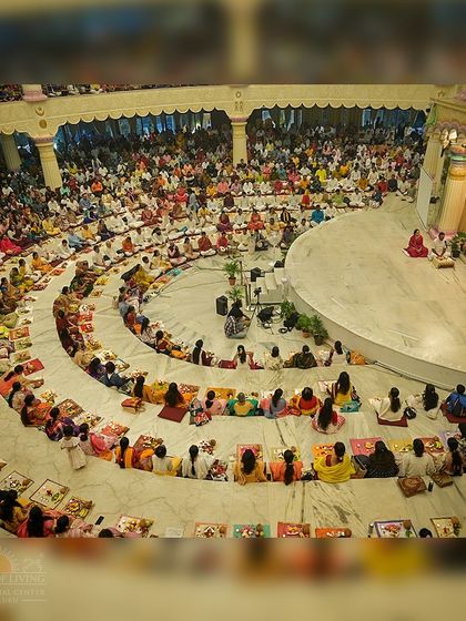 We organise conferences, festivals, and gatherings where you can learn from Gurudev, join wisdom sessions, celebrate with people from around the world, and take part in rituals, music, and workshops all in one place.