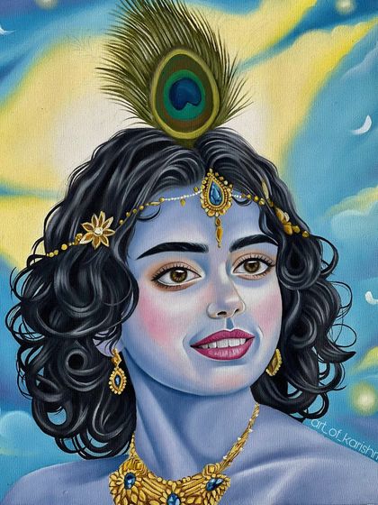 Hi, I’m Karishma, Delhi ki artist. Art for me is pura devotion. Jab main paint karti hoon, I get lost in rang (colors) and canvas, searching for myself. Divine figures like Shiva and Krishna, painting their eyes – bas, that’s magic for me. My art is my shanti (peace), and I hope it brings a little calm and beauty to your home too.