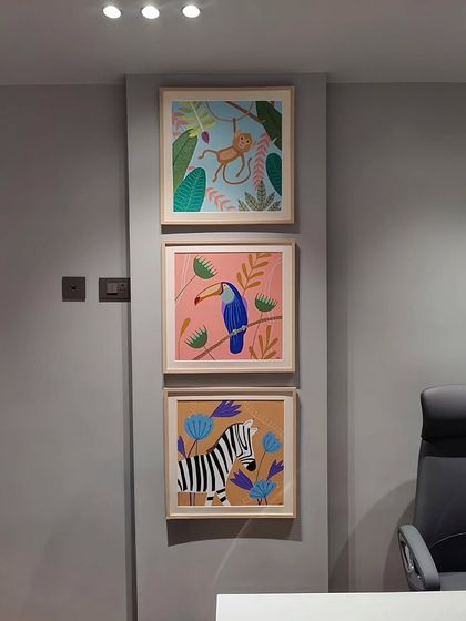 Every space is different. I do single statement canvases for bold impact, sets for bigger walls, and playful pastels or animal series for kids’ rooms. If you want a diptych or triptych, I’m all in for creating a unified look.
