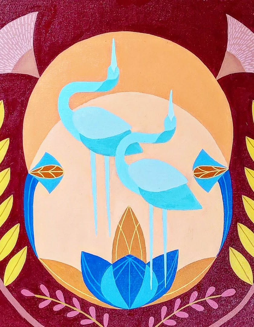 Art is a powerful way to tell a story. In this collection, I work with clients to create deeply personal paintings that represent their journey, relationships, or values, often using symmetry, mandalas, and symbolic imagery like lotuses and birds.