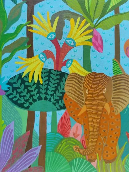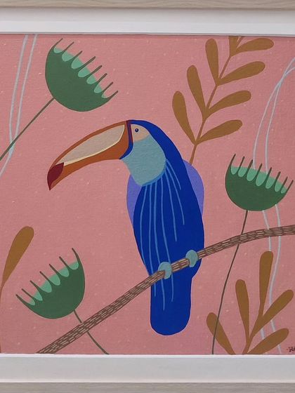 I draw so much inspiration from the natural world. This gallery features custom paintings filled with tropical leaves, exotic birds, and floral motifs, available in both vibrant, full-color styles and as detailed monochrome line art.