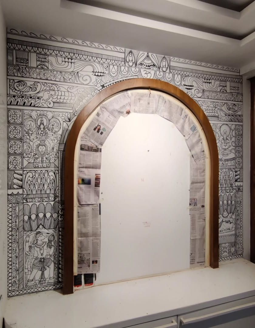 I have a special place in my heart for detailed line art, whether it's for a sacred puja room or a modern office. I create custom designs using traditional Indian motifs, deities, and patterns, typically in a striking black and white or single-color style to make a quiet but powerful statement.