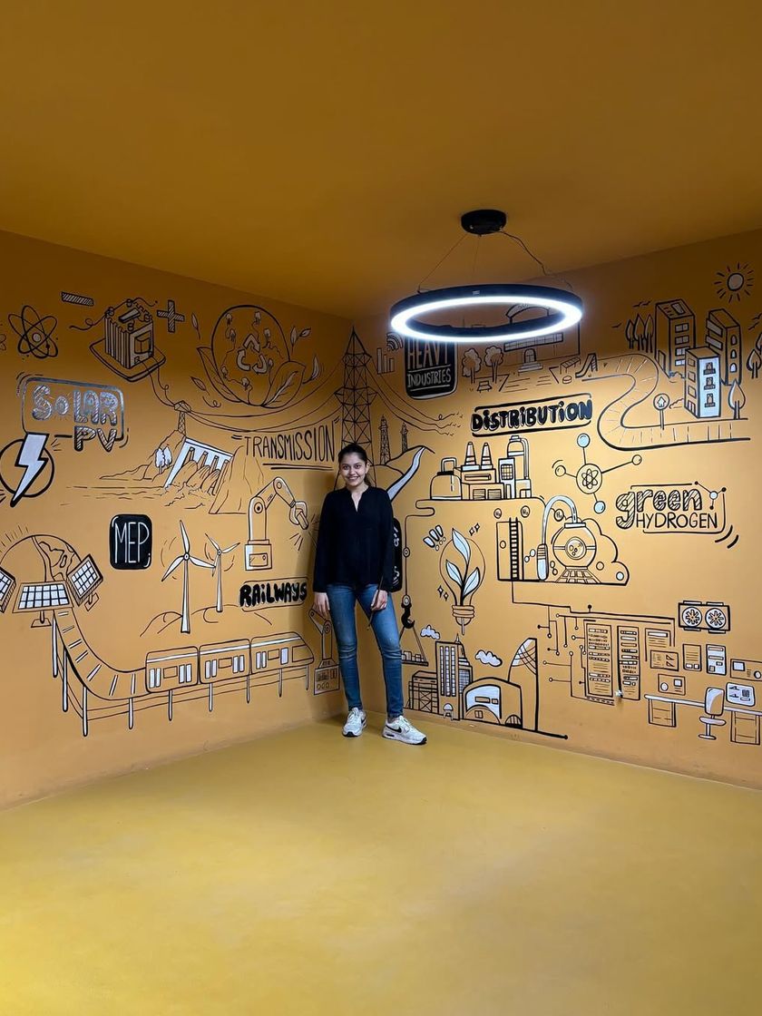I help businesses bring their brand story and company values to life through large-scale murals and installations. I have worked with clients like Wipro, Delta Airlines, and Amara Raja Group to transform office interiors, reception areas, and even exterior containers into engaging and inspiring environments.