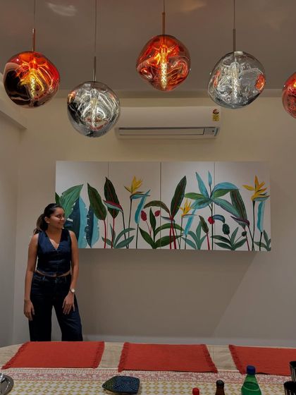I believe your home should tell your story. I work closely with you to create custom murals for any part of your house, from a serene design for your bedroom or pooja corner to a playful scene in a child's room or a statement piece on your living room furniture. My styles range from lush tropicals and modern botanicals to traditional motifs.