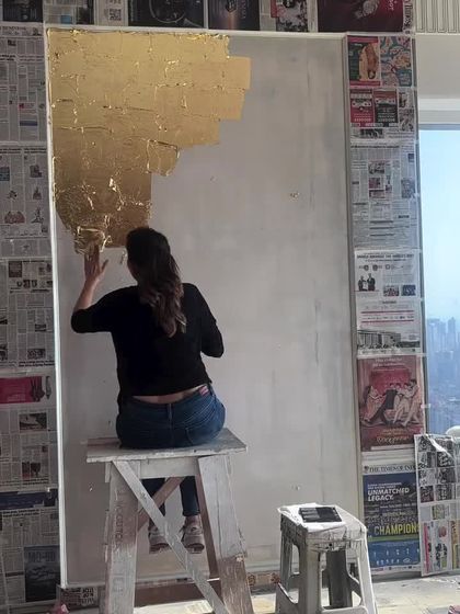 This is one of my signature styles. I use gold, silver, or copper leaf to create a luminous backdrop or add shimmering accents to a design, bringing a unique sense of warmth and elegance to residential and commercial spaces. The effect is a wall that interacts with light and changes throughout the day.