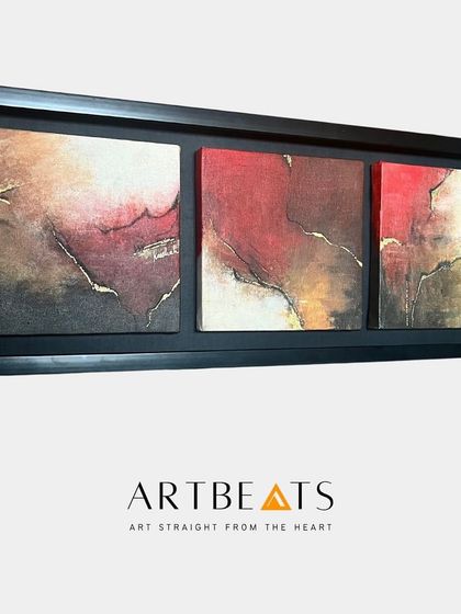 I make original hand-painted artworks and offer custom commissions where we co-create a painting for your space using acrylics, textured canvas, and sometimes embroidery, all made by me from start to finish.