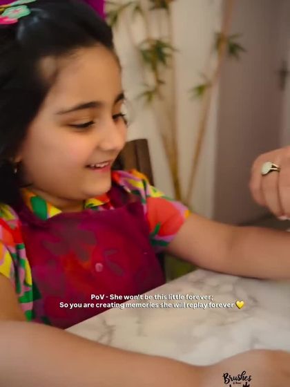 Hey, I’m Isha. I’m the ‘Narrative Girl’ and together with my mom, we run Brushes & Brew - our little maa-beti jodi dream. Studio B&B is our haven, built with love and chai breaks. Mom’s always behind the camera, cheering me on, my jigar ka tukda (piece of my heart). Here, it’s just you, your story, and a canvas. Doesn’t matter if you’re 4 or 84, everyone’s got something to paint. Come, breathe, create. Simple.