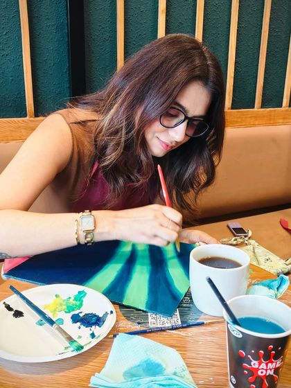 I help anyone, even complete beginners, create their own artwork in guided sessions at my Noida studio, with all supplies and coffee included.