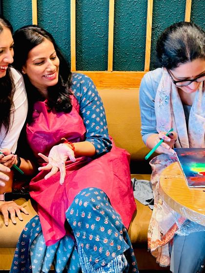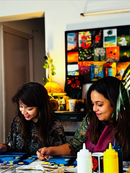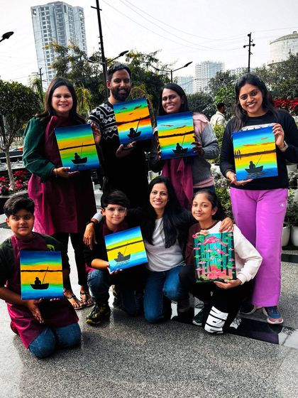 I host private art parties where I bring all materials, guide you step-by-step, and make sure everyone—from kids to adults—creates their own artwork at my studio or your venue in Delhi NCR, no experience needed.