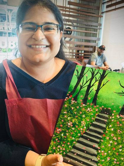 I create custom paintings based on your story and offer private art lessons in my Noida home studio for all skill levels, with all materials and personal guidance included.