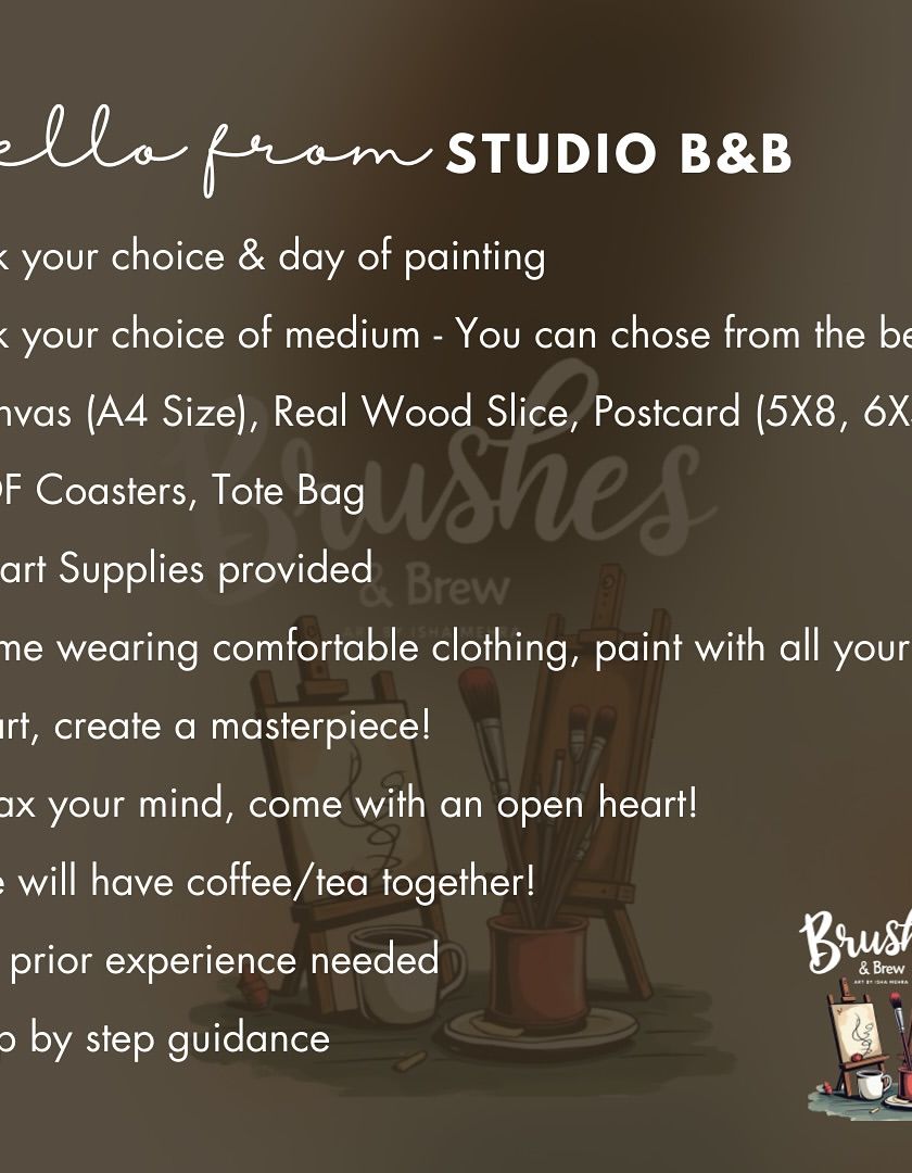 Brushes & Brew is a dream my mom and I built together. She's the badass behind the camera, and I'm the narrator with the brush. Our cozy Noida studio is our safe space, and we love sharing it with you.