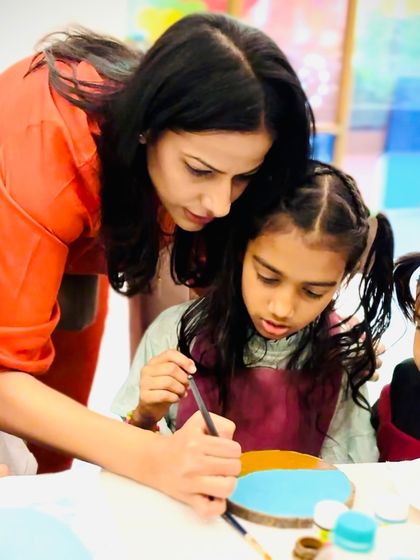 Hey, I’m Isha. I’m the ‘Narrative Girl’ and together with my mom, we run Brushes & Brew - our little maa-beti jodi dream. Studio B&B is our haven, built with love and chai breaks. Mom’s always behind the camera, cheering me on, my jigar ka tukda (piece of my heart). Here, it’s just you, your story, and a canvas. Doesn’t matter if you’re 4 or 84, everyone’s got something to paint. Come, breathe, create. Simple.
