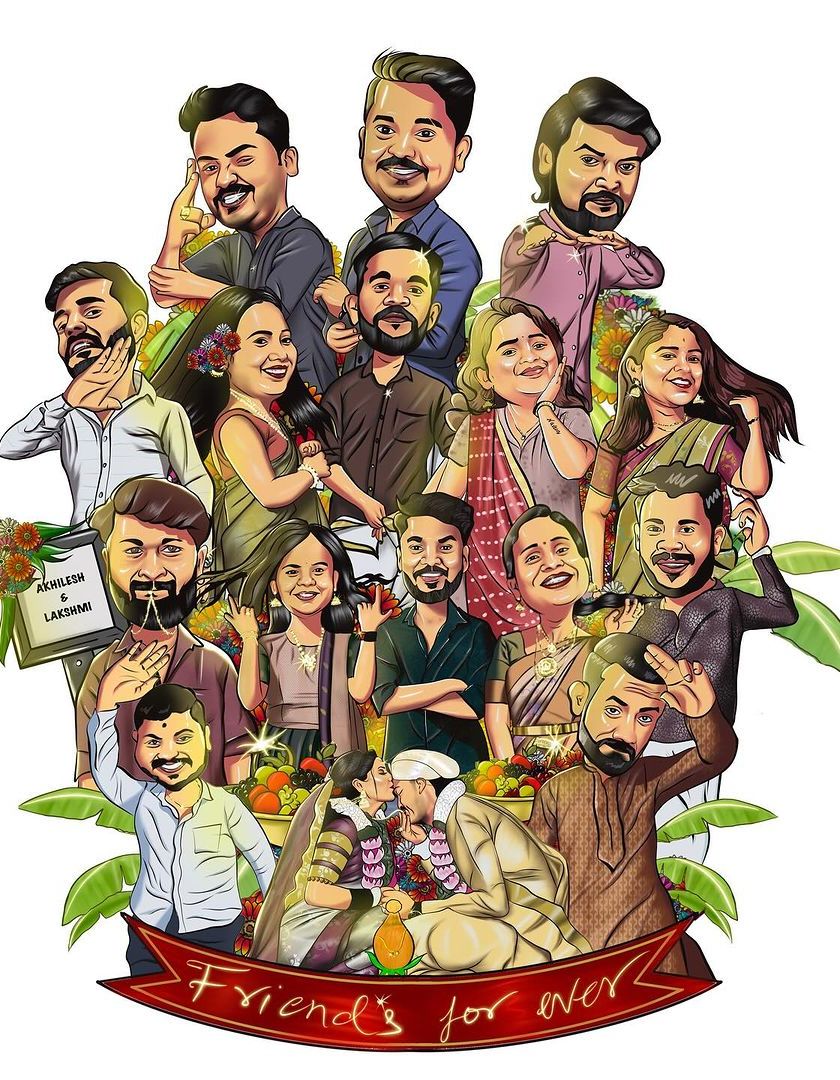 Celebrate your bond with a custom group illustration, perfect for birthdays, farewells, or just because. I can combine multiple photos into a single artwork, creating a lively collage that tells the story of your friendship.