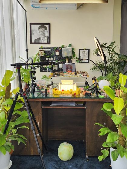 This is where the magic happens. My studio is my sanctuary, where I sketch, draw, and bring your memories to life on my iPad, surrounded by things that inspire me.
