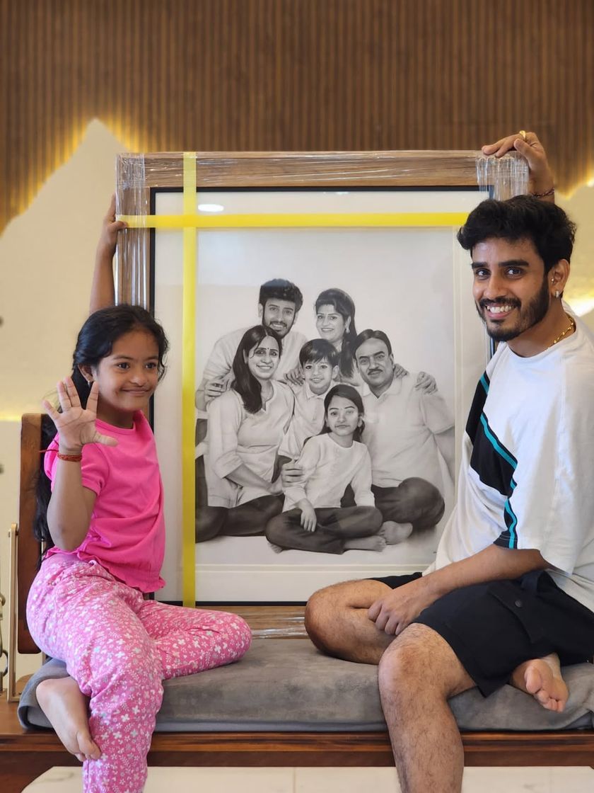Each portrait is a journey that takes anywhere from 8 to over 75 hours. I use professional-grade Staedtler pencils, Camlin charcoal, and thick Ivory or Strathmore paper to meticulously build layers of shading and detail, transforming your photo into a realistic piece of art.