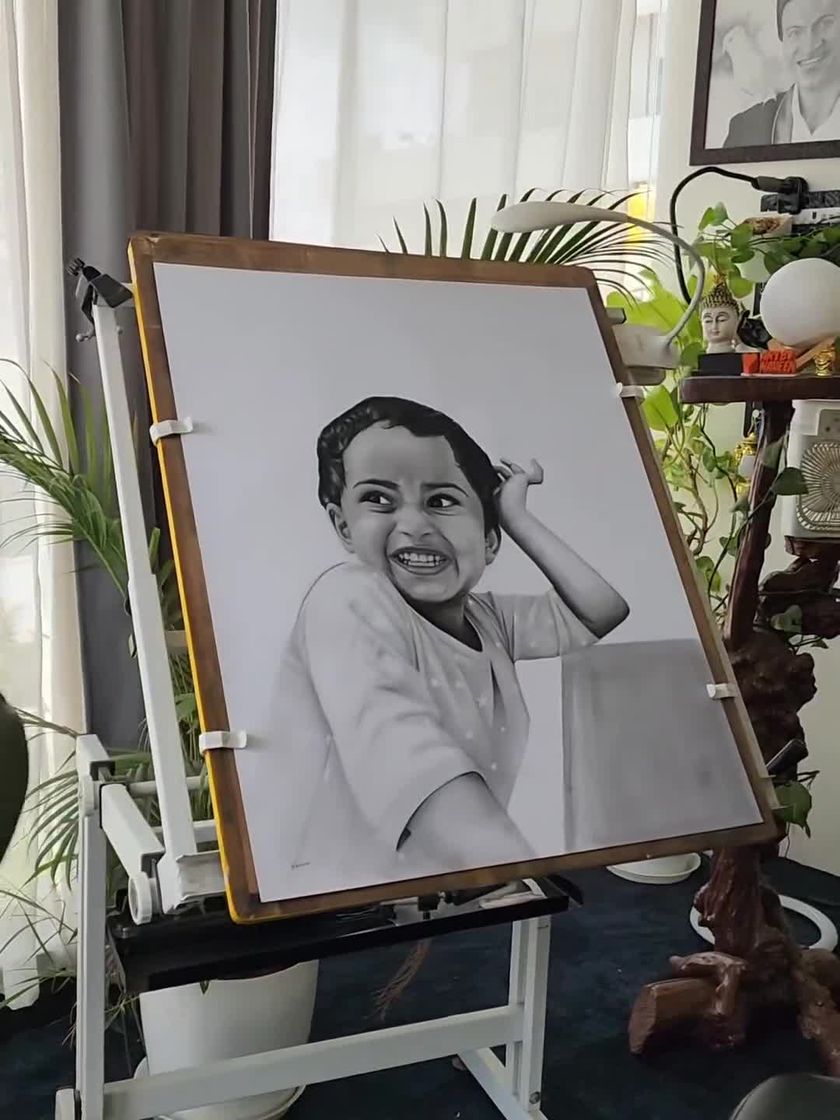 Welcome to my studio in Bangalore! This is where I spend countless hours with just my pencils and paper, turning your cherished photos into works of art. It's my happy place, filled with plants, good light, and creative energy.