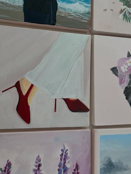 I specialize in turning your travel adventures into collections of tiny, detailed paintings. Each miniature captures a specific place or moment, which can be arranged into a large, stunning installation or a smaller, curated set for your wall.