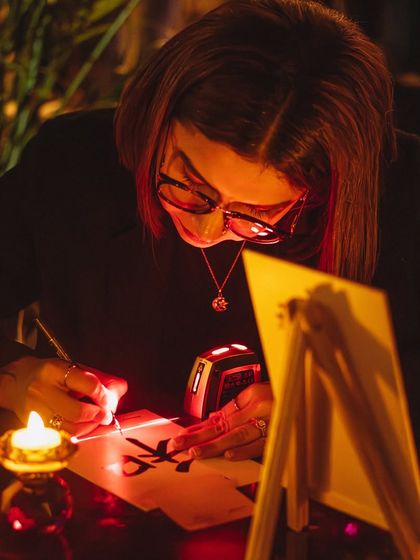 I'm an artist exploring the messy, honest transition from structured calligraphy to raw, emotional expression. I offer custom paintings, live art, and workshops that are born from this journey.