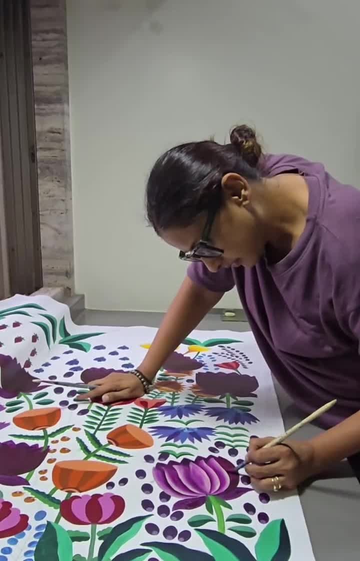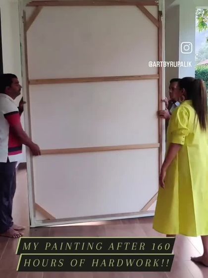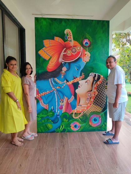 These are the showstoppers. I create monumental paintings, like the 8-foot Radha Krishna, designed to be the heart of a room. Using rich acrylics and detailed stone or pearl embellishments, I craft pieces that bring a sense of grandeur and timeless storytelling to large walls in homes, villas, and offices.