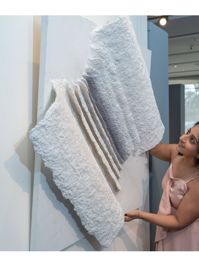 This collection is a deep dive into my signature series, 'The Awakening Cycle'. Each piece is a large-scale, circular sculpture made from upcycled paper and mixed media, exploring themes of transformation, inner balance, and spiritual growth through flowing textures and symbolic hands.