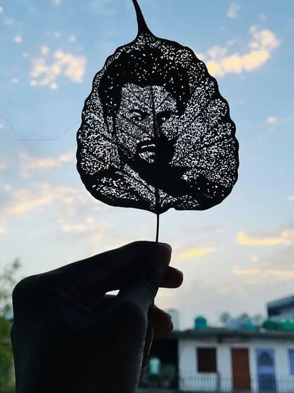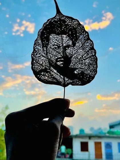 Intricate Leaf Art Designs - I carve portraits, temples, Adiyogi on leaves. Try holding it up to the sky – next level.
