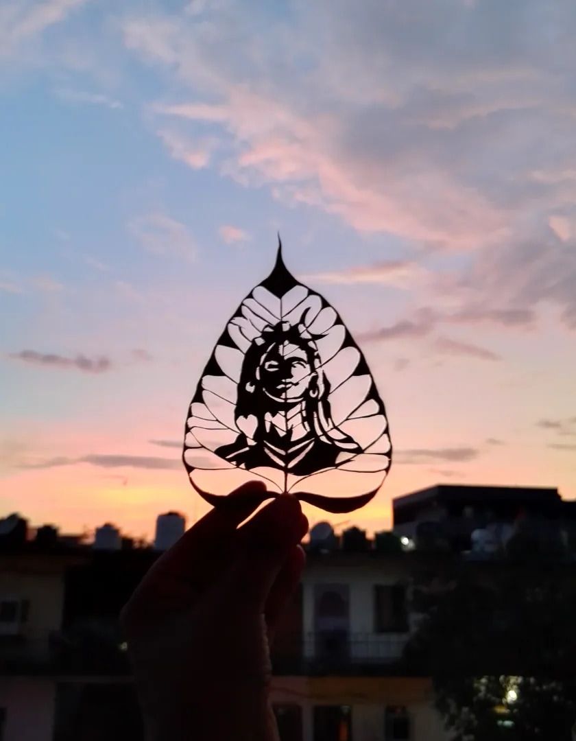 I find great peace in carving spiritual designs onto delicate Peepal leaves, a craft that requires immense patience and focus. Each piece, from Adi Yogi and Lord Jagannath to the sacred 'Om' symbol or Kedarnath temple, comes alive when held against the light.
