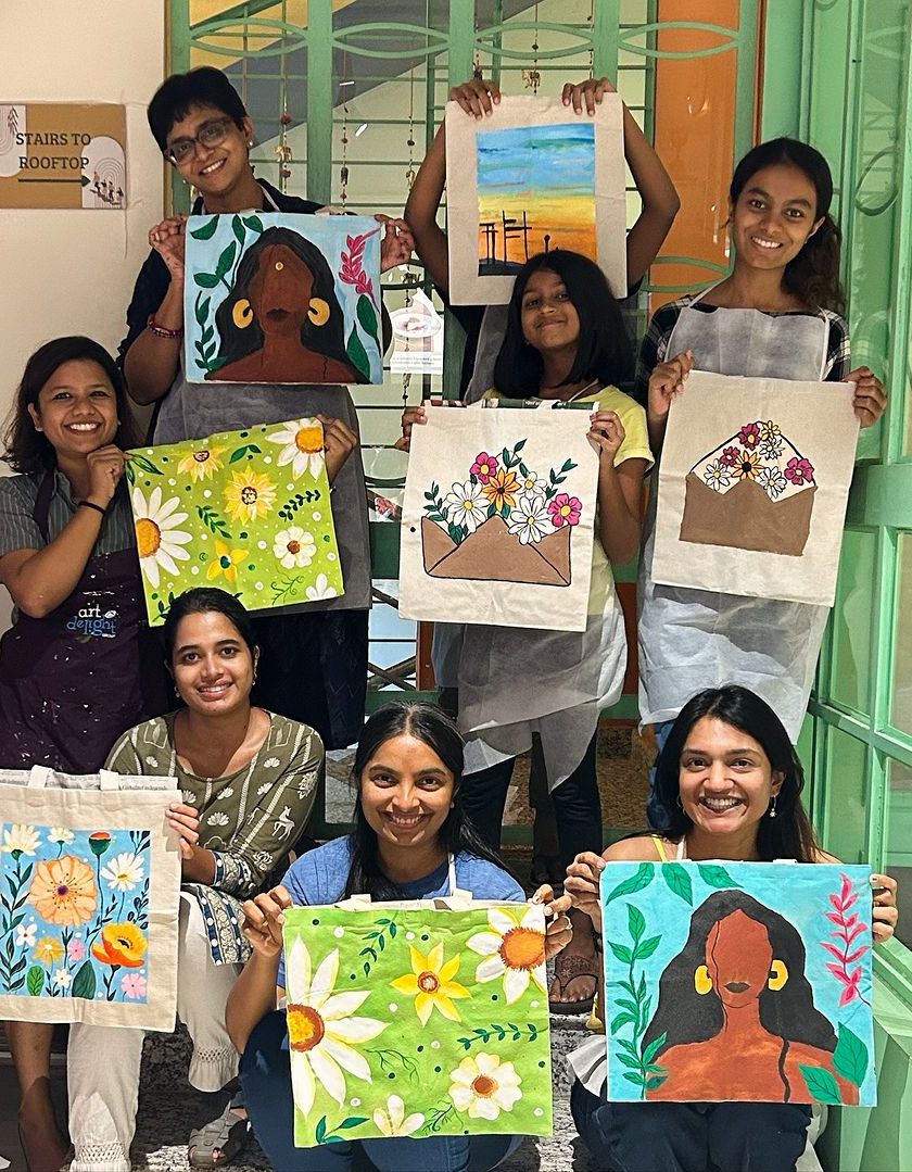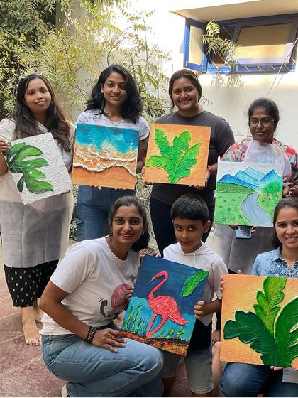I design engaging art workshops that serve as a perfect team-building activity or a fun break from the office routine. These sessions help colleagues connect, relax, and unleash their creativity in a fun, collaborative environment. I can host at your office or another venue in Bangalore, and I handle all the logistics.