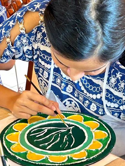 We teach the meditative art of dot mandala painting through hands-on instruction. Our workshop guides you through creating intricate mandala patterns using precise dotting techniques, often culminating in decorative items like lamps.