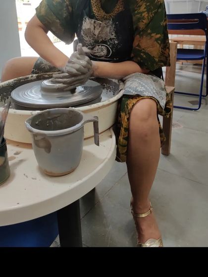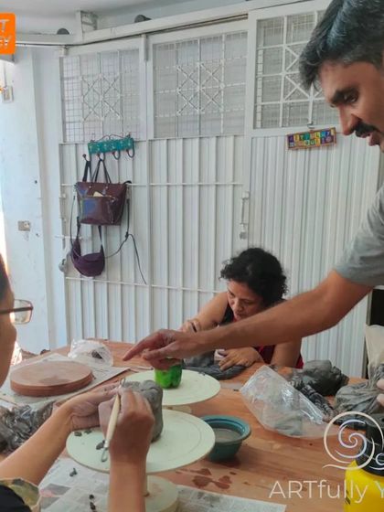 We host group pottery sessions at our studio or your venue in Bangalore, handle all materials and guidance, and everyone gets to make and keep their own finished pottery piece.