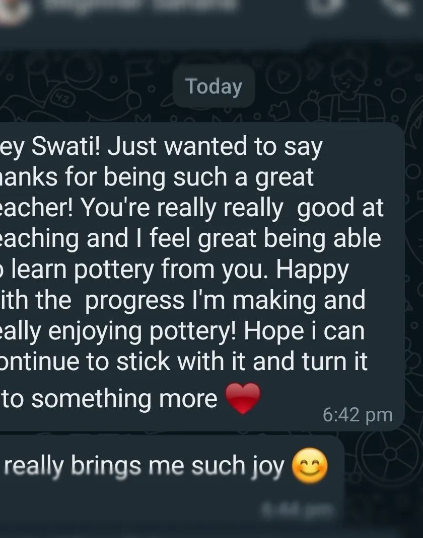 The connections formed in the studio are the most rewarding part of my work. Here are some kind words from my students and photos that capture the joy and mindfulness found in our clay sessions.
