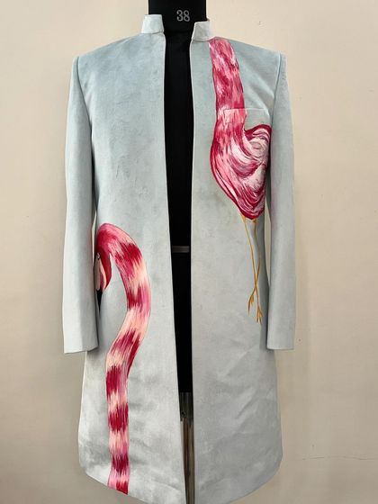 I collaborate with fashion and interior designers to create unique hand-painted artworks for their collections and projects. My expertise spans custom clothing designs, including blazers, sherwanis, and carnival outfits, using techniques like fabric painting, bleach art, and gold foil art.