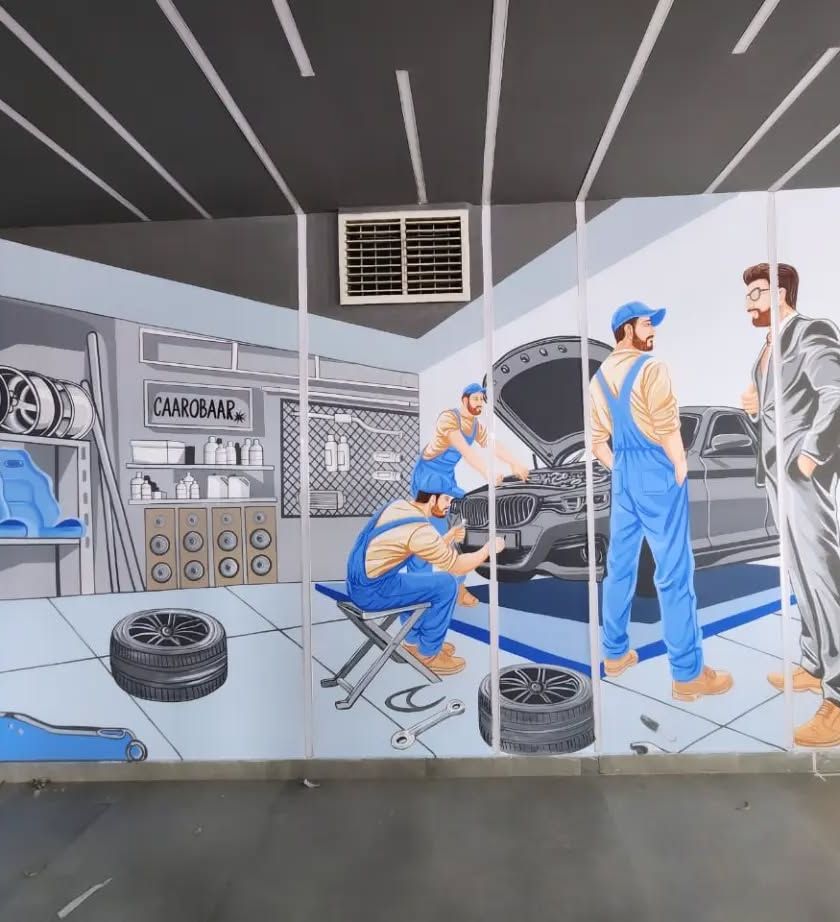 We specialize in high-impact art for automotive businesses. From custom car portraits and graffiti logos to full-scale garage scenes, we create murals that capture the power, speed, and culture of the automotive world.