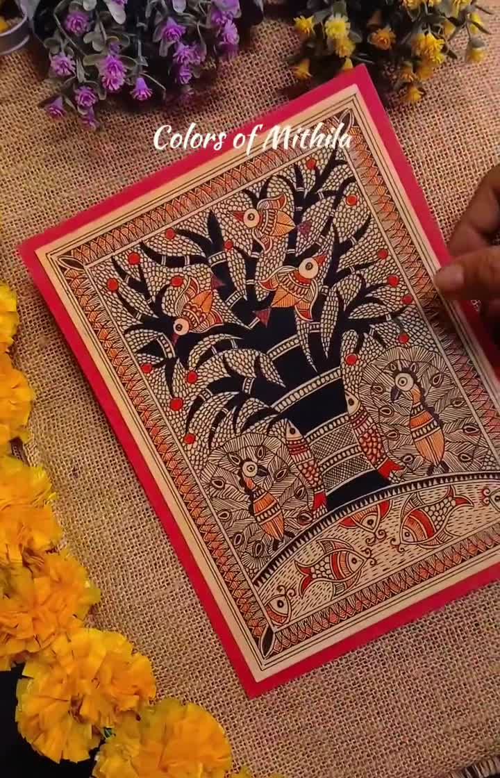 This is my favorite traditional Indian folk art, full of intricate lines and vibrant stories. I paint classic Madhubani motifs like the Tree of Life, peacocks, fish, and the Sun God, perfect for adding a touch of heritage and color to any wall.