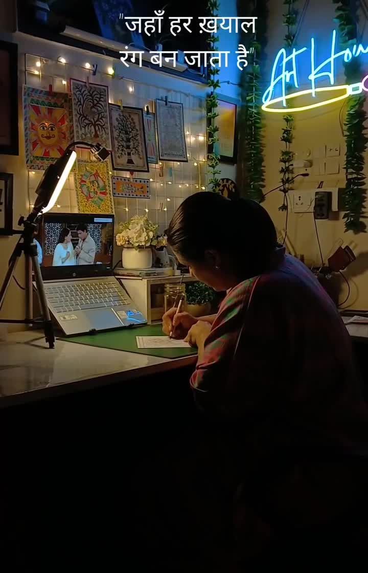 Welcome to my happy place, my sukoon. This is where every thought becomes a color, and every canvas holds a dream. Here's a little peek into my creative process, from the first sketch to the final brushstroke.