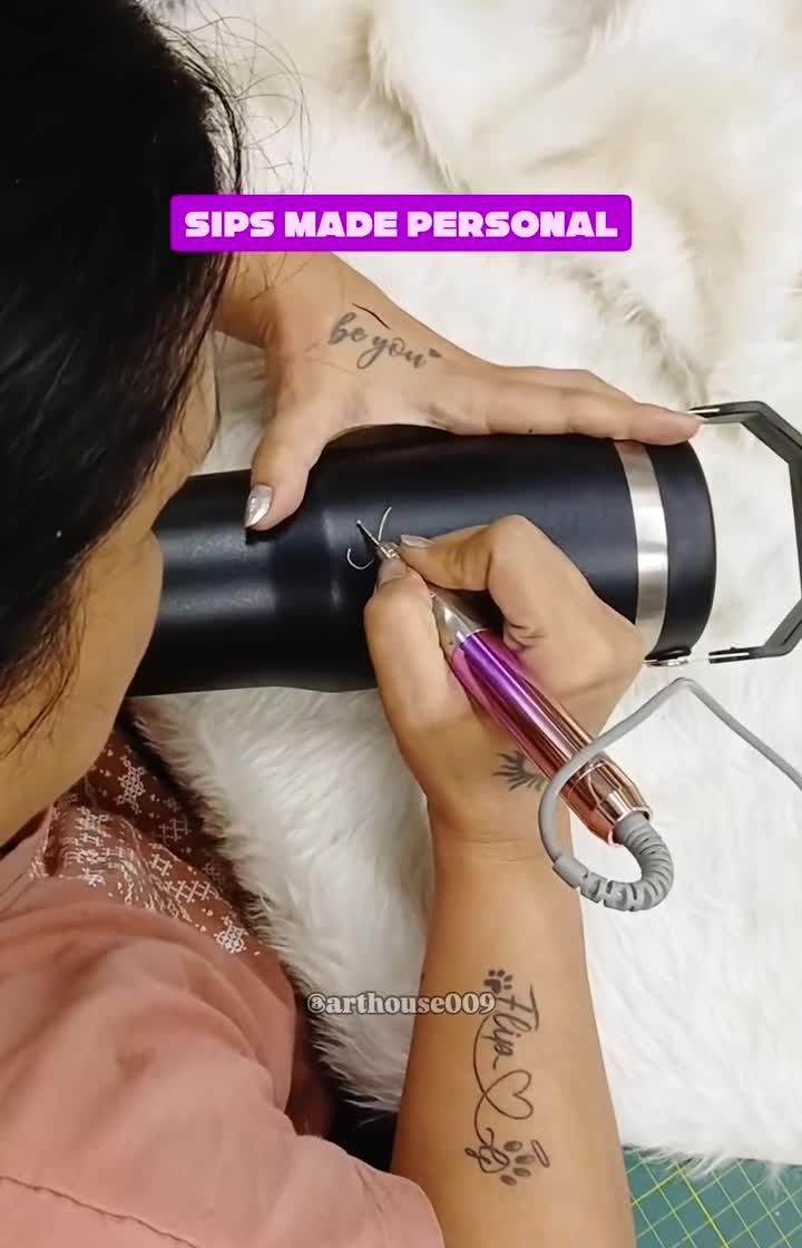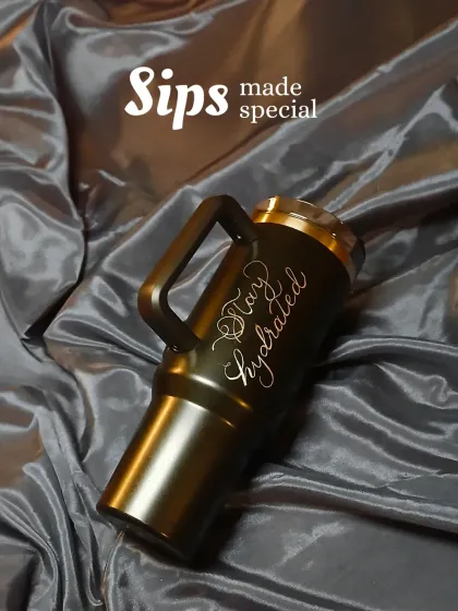 I turn everyday mugs, tumblers, and sippers into something that feels uniquely yours. Whether it's a glass tumbler with a leather sleeve for your cold coffee or a ceramic mug for your morning chai, I hand-etch names, quotes, or little designs to make each sip a moment of joy.