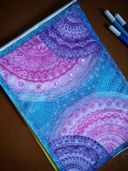 Hi, I'm Ayshwarya. Art is just... my thing. It’s how I connect everything around me. Shifted from Bangalore to Kochi, carrying my paints and a bunch of half-finished ideas. Some days, I feel like that phoenix I painted - gotta restart, rise up, try again. I get lost in the tiny details, whether it’s a galaxy-coloured mandala or a Kalamkari piece. Kerala’s heritage, especially Theyyam and Kathakali, keeps me inspired. Even a small bookmark makes me happy. Every piece is a bit of my story.