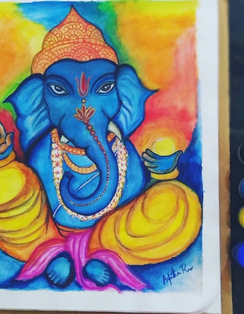 This collection is dedicated to sacred and traditional Indian figures. I create custom paintings of deities like Ganesha and classic motifs like the Kalamkari peacock, using rich colors and detailed brushwork to honor their stories.