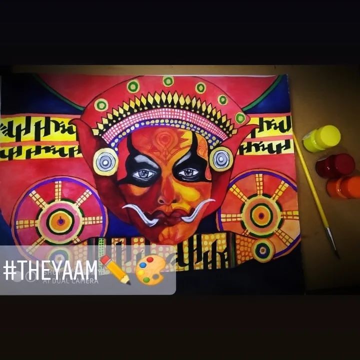 I bring the dramatic energy of Kerala's performance arts to life on canvas. This collection features my interpretations of Theyyam, Kathakali, and traditional mural styles, focusing on the bold colors and expressive details that define this powerful art form.