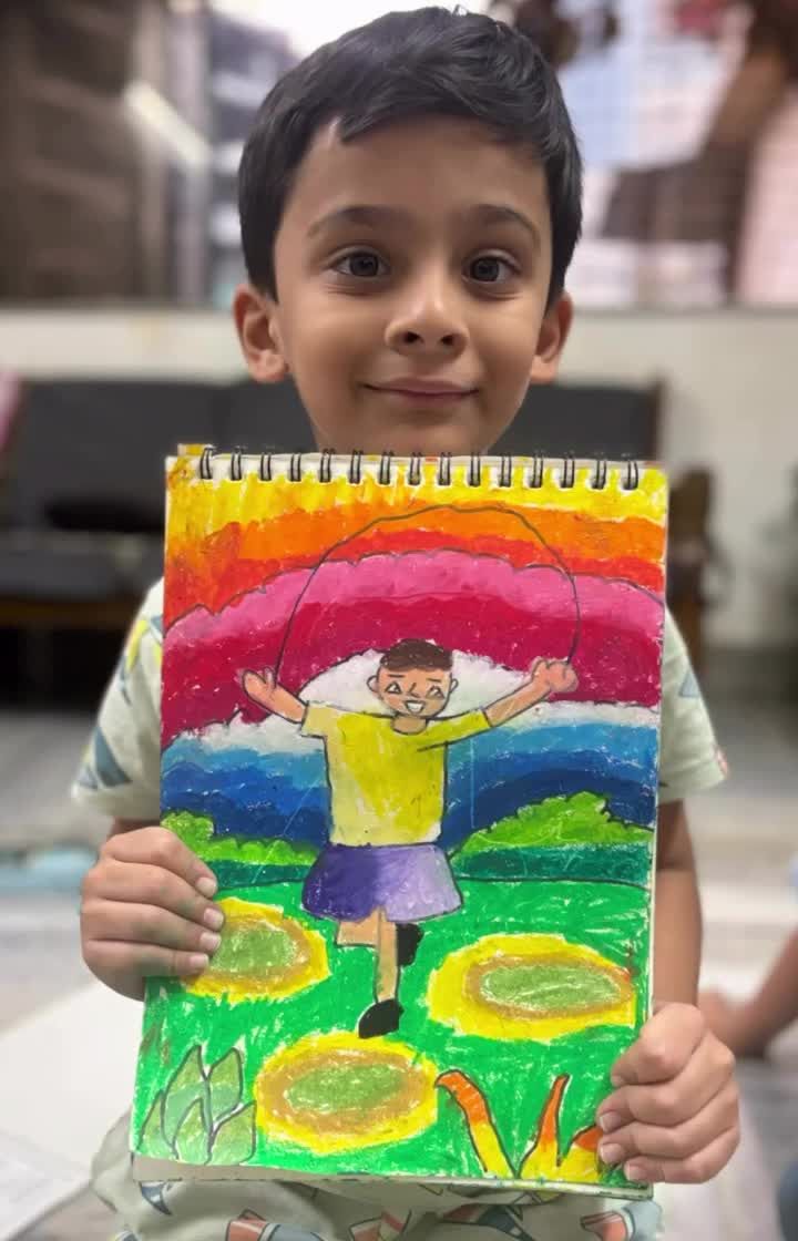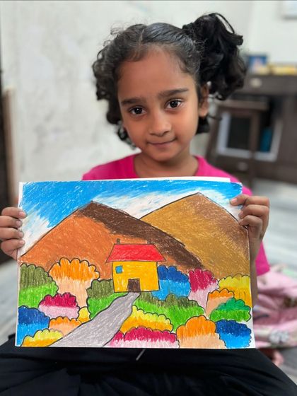 This is where the magic begins for my youngest students, aged 4 and up. I guide them to explore shapes, animals, and landscapes using oil pastels and crayons, building their confidence with every colourful stroke. We focus on fun and expression, not perfection.