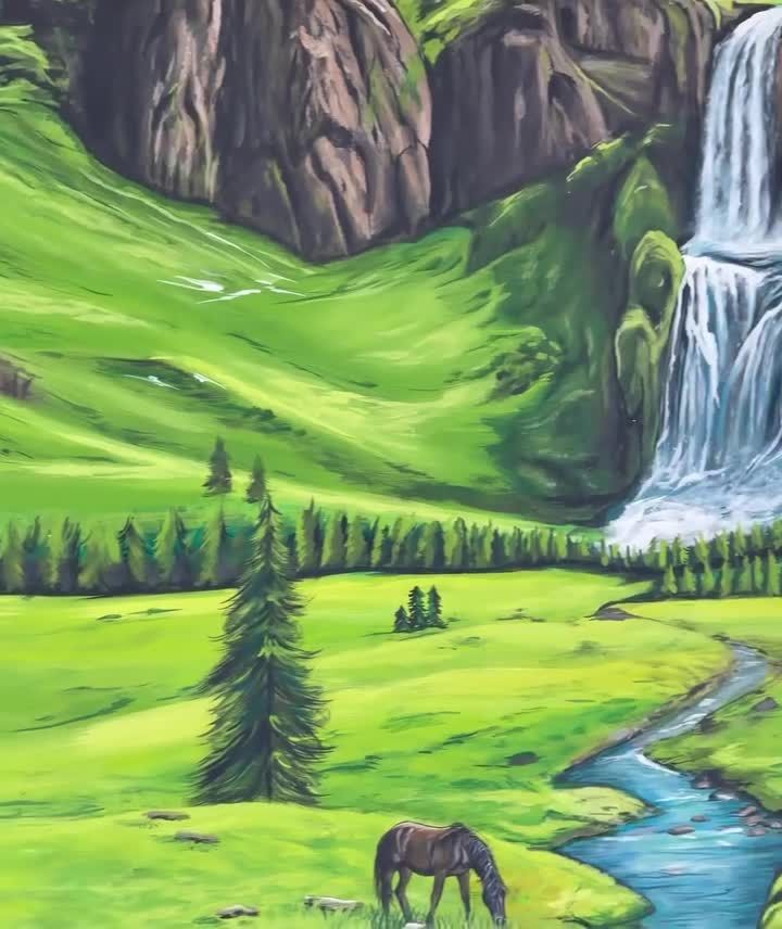 I bring the serenity of nature into your home, from peaceful mountain valleys to vibrant jungle scenes. Each mural is custom designed using acrylics to create a tranquil atmosphere in living rooms, bedrooms, or any space that needs a touch of the outdoors.