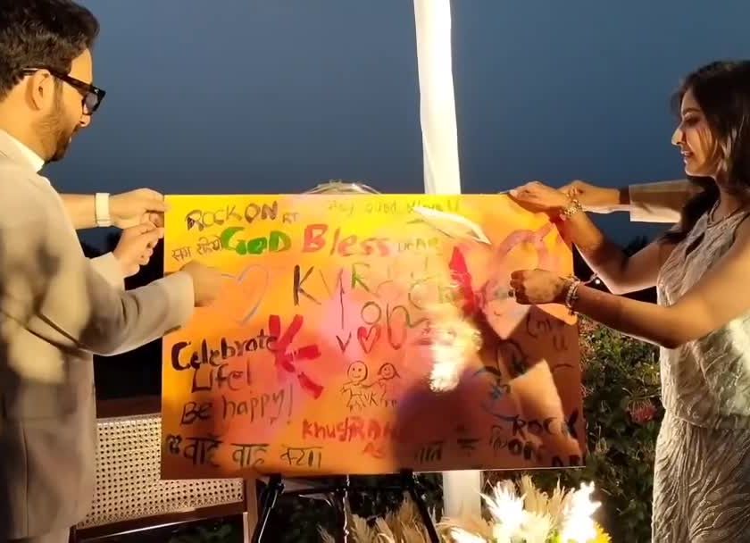 This is a truly collaborative art experience. I invite your guests to write their wishes and add their own doodles to a blank canvas. I then use my technique to transform their collective energy and messages into a surprise portrait of the guests of honor.