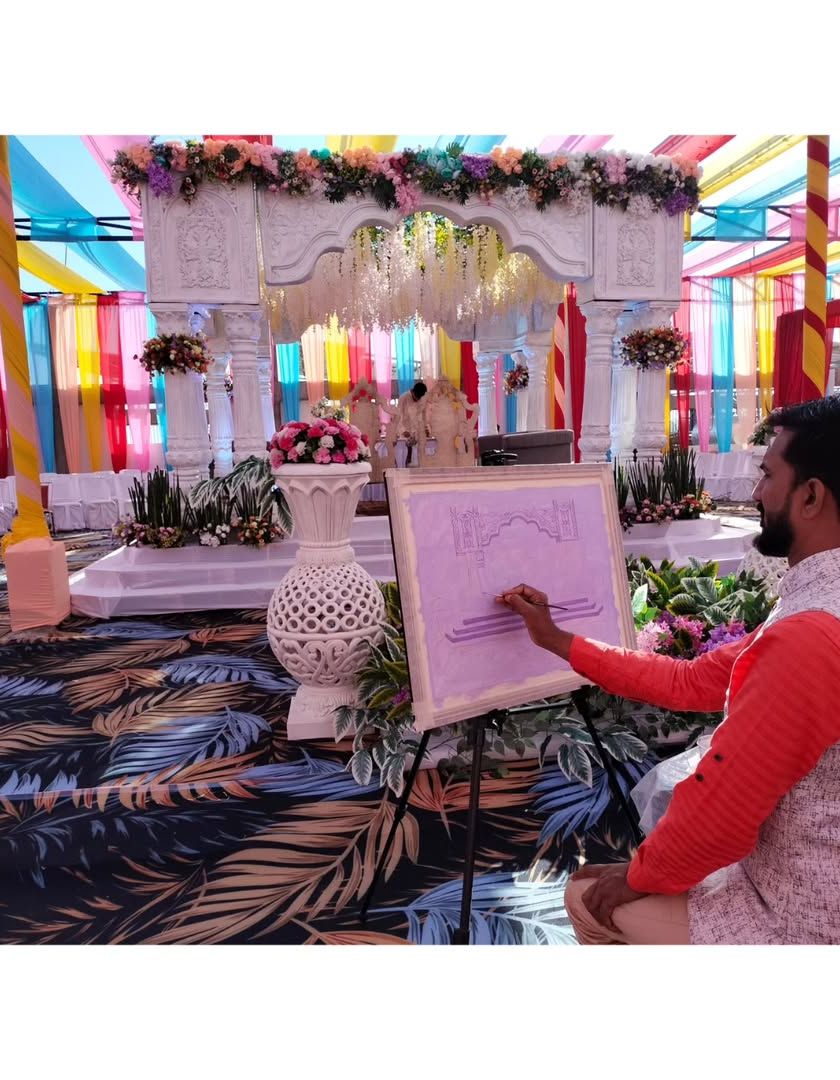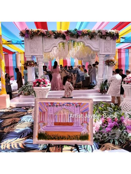 I capture a key moment from your wedding day on canvas as it happens, from the pheras to the reception. This provides unique entertainment for your guests and leaves you with a beautiful, hand-painted memory of your special day to hang in your home.