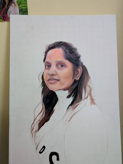 I create detailed custom portraits using acrylic on canvas, specializing in both realistic and hyperrealistic styles. My portraits range from small to large-scale pieces (up to 6x7 feet), utilizing the grid method for precise proportions and intricate detailing.