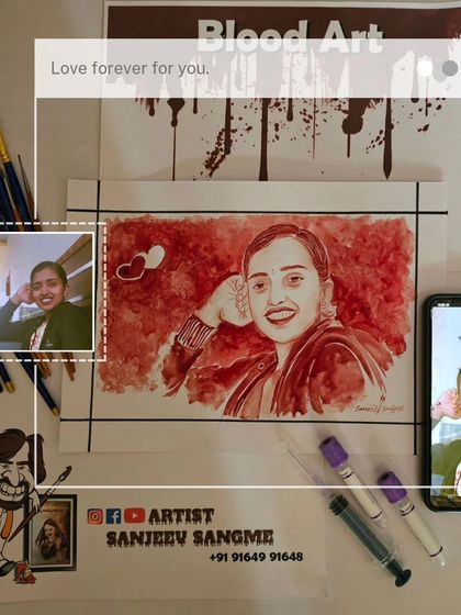 Blood Art: Rakta-dalli bareda chitra - I use a few drops of blood to create paintings full of deep emotion, perfect for love, parents, or special apologies.