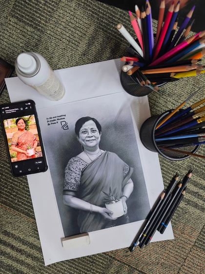 I see art as a way to hold on to feelings - love, gratitude, even nostalgia. When I work, I don't rush. Taalme annodu weakness alla. Adondu maha shakti (Patience is not a weakness. It's a great power). Each custom memory artwork I make is about capturing your story, not just your face.