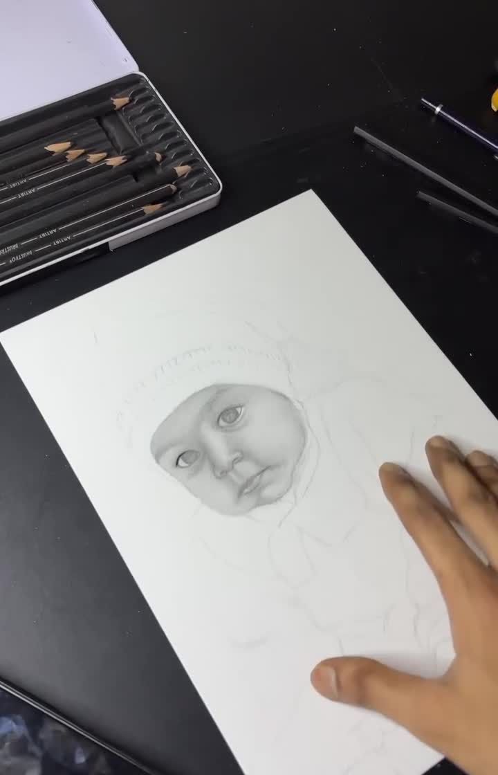 Every sketch takes many hours of patient work, from the first outline to the final details. Here you can see how I use my tools and techniques to carefully build each layer and bring your portrait to life in my studio.