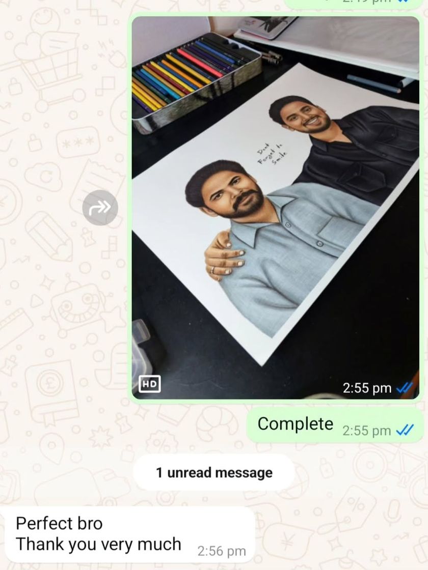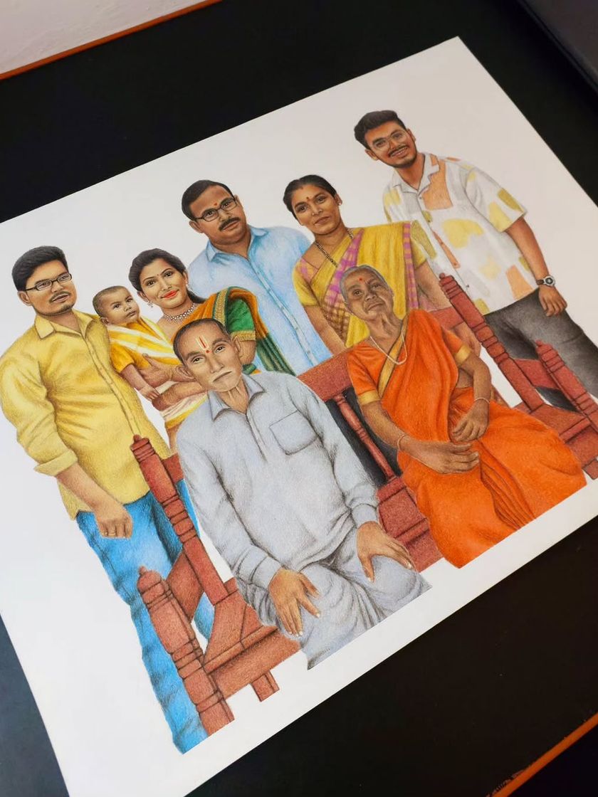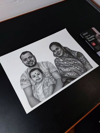 I specialize in creating beautiful family portraits, even merging people from different photos into one single artwork. From father-son sketches to large family groups, I capture the bond you share.