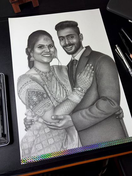 Using high-quality colour pencils, I bring your photos to life with rich skin tones and detailed work on clothing and jewellery. This style is amazing for wedding gifts, anniversaries, and making your memories colourful.
