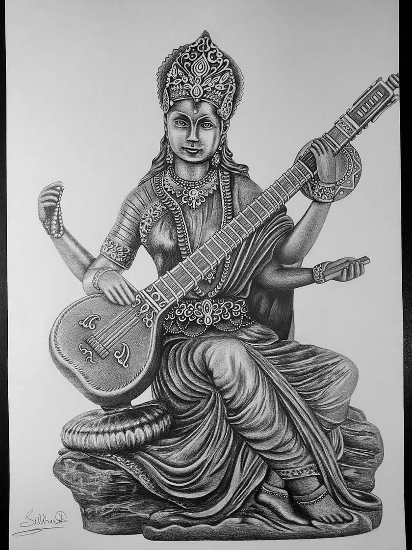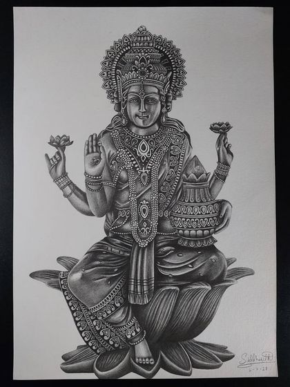 I create highly realistic black and white portraits using graphite and charcoal pencils. This is a classic and popular choice for capturing memories, from couple portraits to spiritual figures like Maa Saraswati, with a focus on fine details and shading.