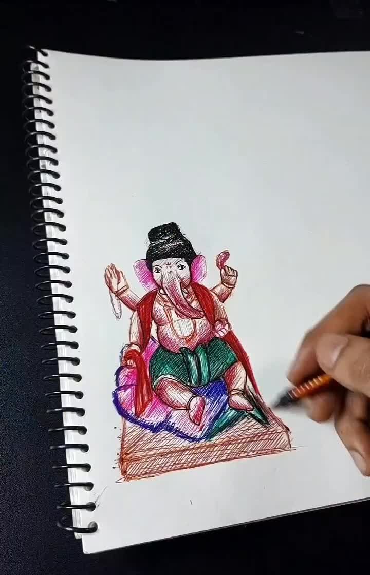 Besides realistic portraits, I also enjoy creating other styles of art. This section includes some of my illustrative work, like these colorful pen sketches of various Ganesh Ji idols from around my city of Banswara.